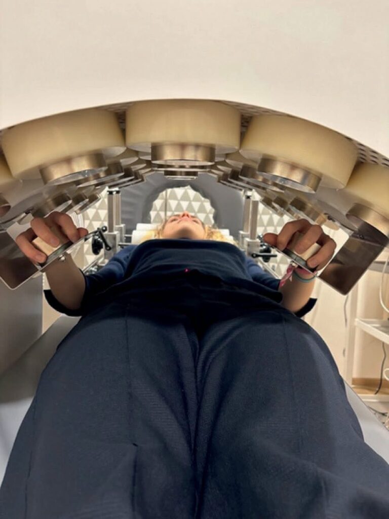 La table crée un champ magnétique autour du corps grâce à des aimants sous la table, une voûte au niveau du thorax et un anneau à l’arrière de la tête. Le visage reste totalement libre, la tête n’est jamais “dans un tunnel” ce qui permet même aux personnes claustrophobes de se sentir à l’aise.